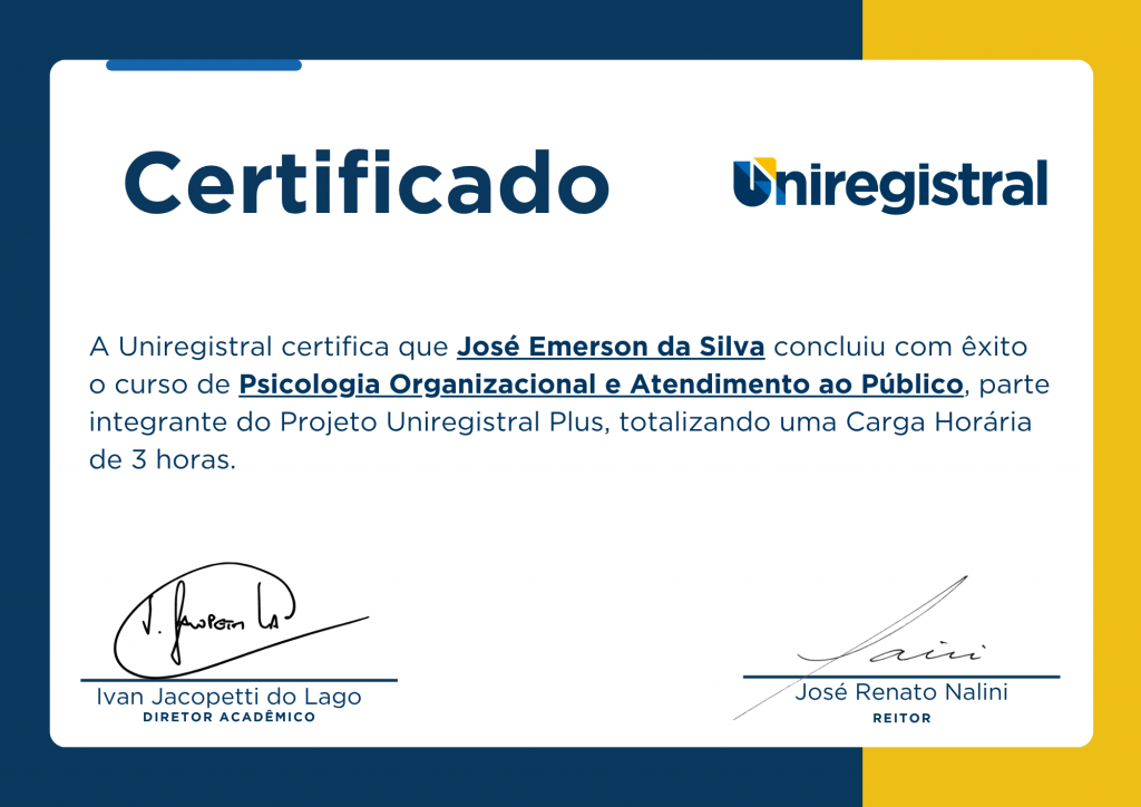 Após a conclusão do curso Psicologia Organizacional e Atendimento ao Público, você receberá um certificado digital, validando sua participação e aprendizado. Nossa plataforma acompanha o progresso das aulas e verifica se você assistiu a todo o conteúdo disponibilizado.